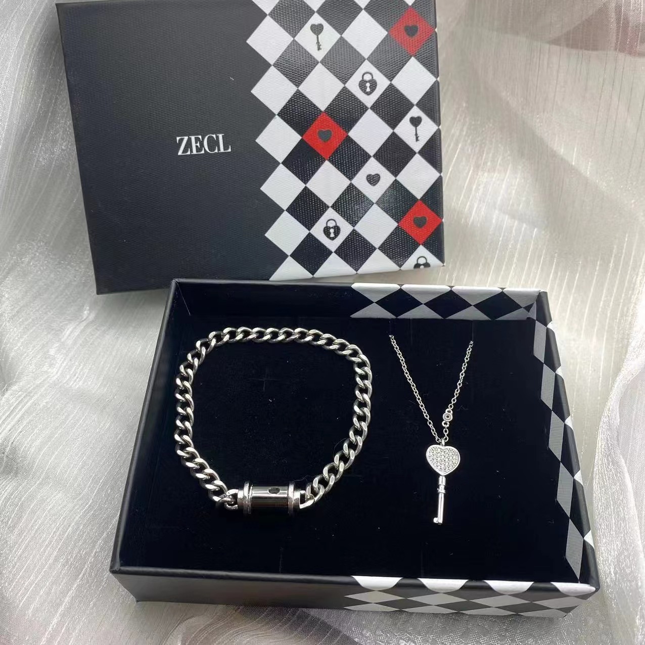 توجد قلادة قفل صغيرة على السوار، وقلادة مفتاح على القلادة.إنه يعني قفل القلب على الشخص الآخر، والتعبير عن مشاعر قوية والتزامات مخلصة.