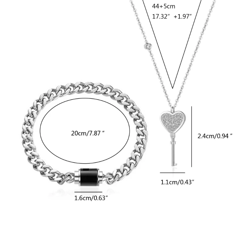 قفل الحب – زوجين سوار + قلادة هدية عيد الحب عيد ميلاد